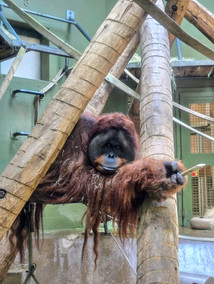 The orangutan was hanging lazily in a tree, dozing in such a funny way that it made me laugh out loud.