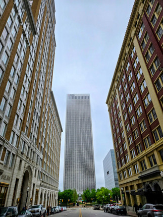 I reached the philtower around 3:45 PM and had no trouble finding parking nearby. Downtown has just a few tall buildings against the cloudy sky. A group of high school kids, likely celebrating an event, were dressed up and taking pictures inside and outside the building, which gave the place a lively atmosphere. I walked around for a bit, grabbed some tea, and enjoyed the moddy view of the clouds brushing the skyline.